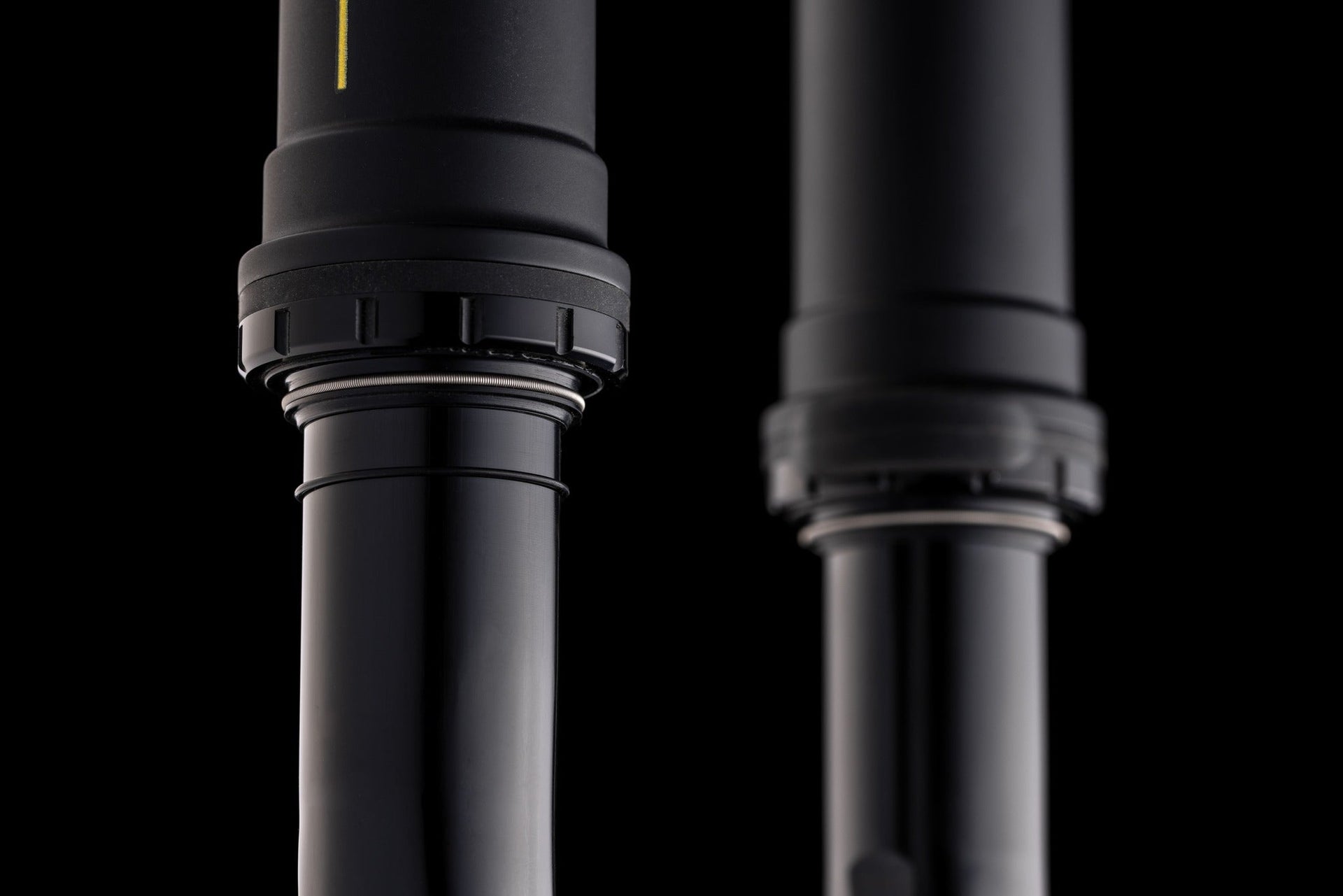 Inverted Design: Promotes smoothest possible operation, lightest weight, & cleanest visual integration by using a layout opposite to conventional suspension forks.