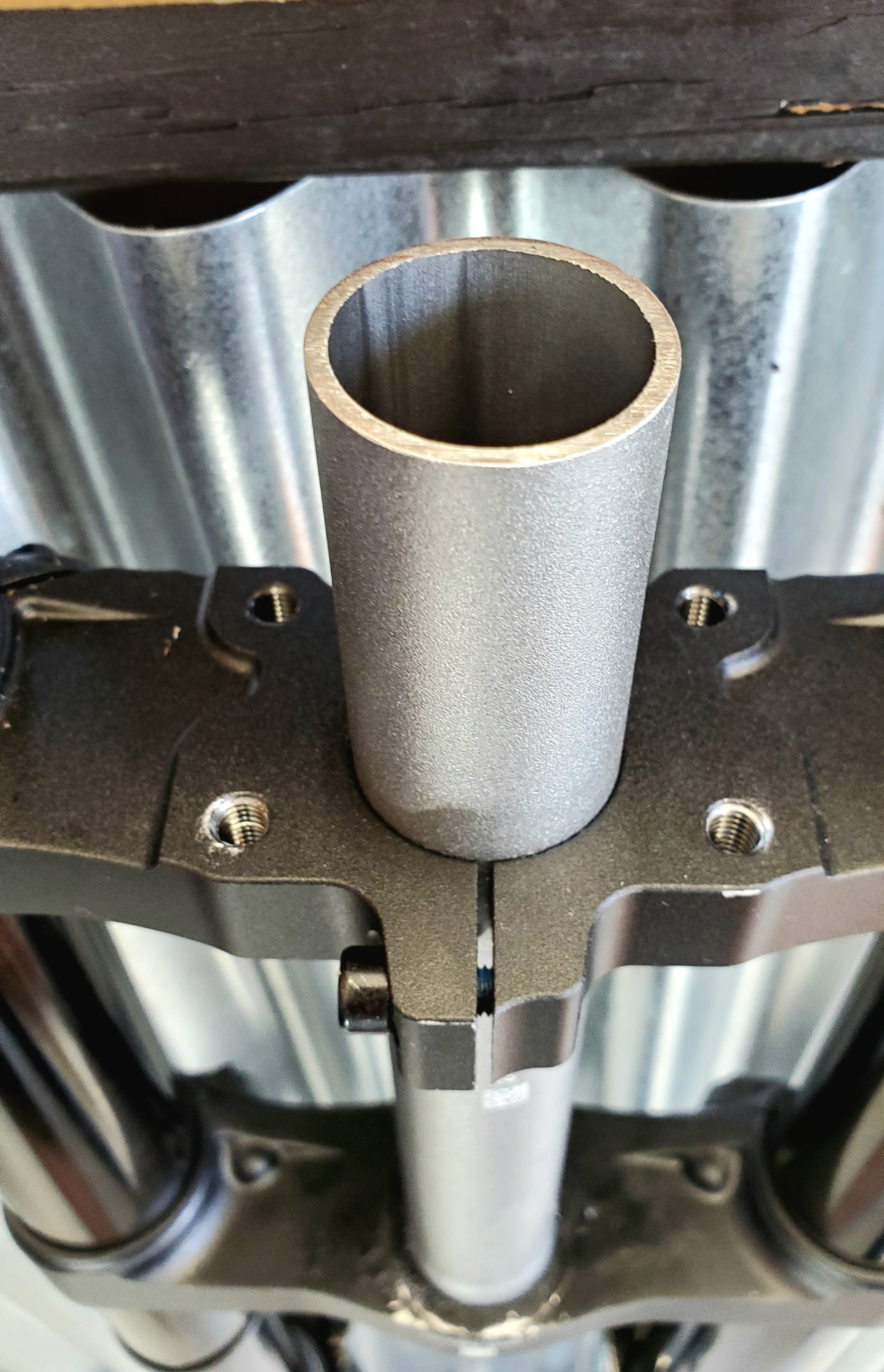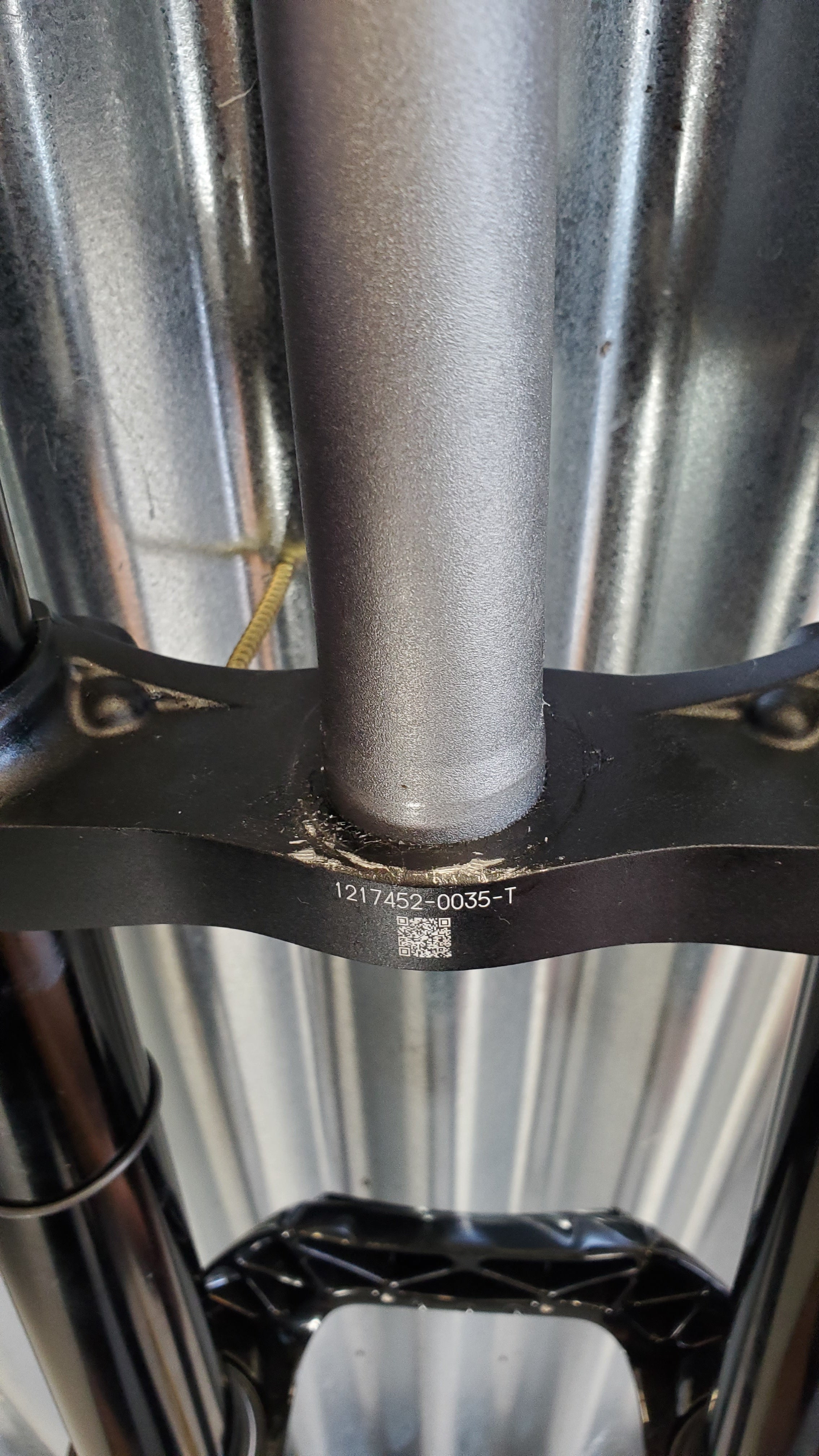 Fork was purchased, cut and returned to us. Has blemish but never ridden.